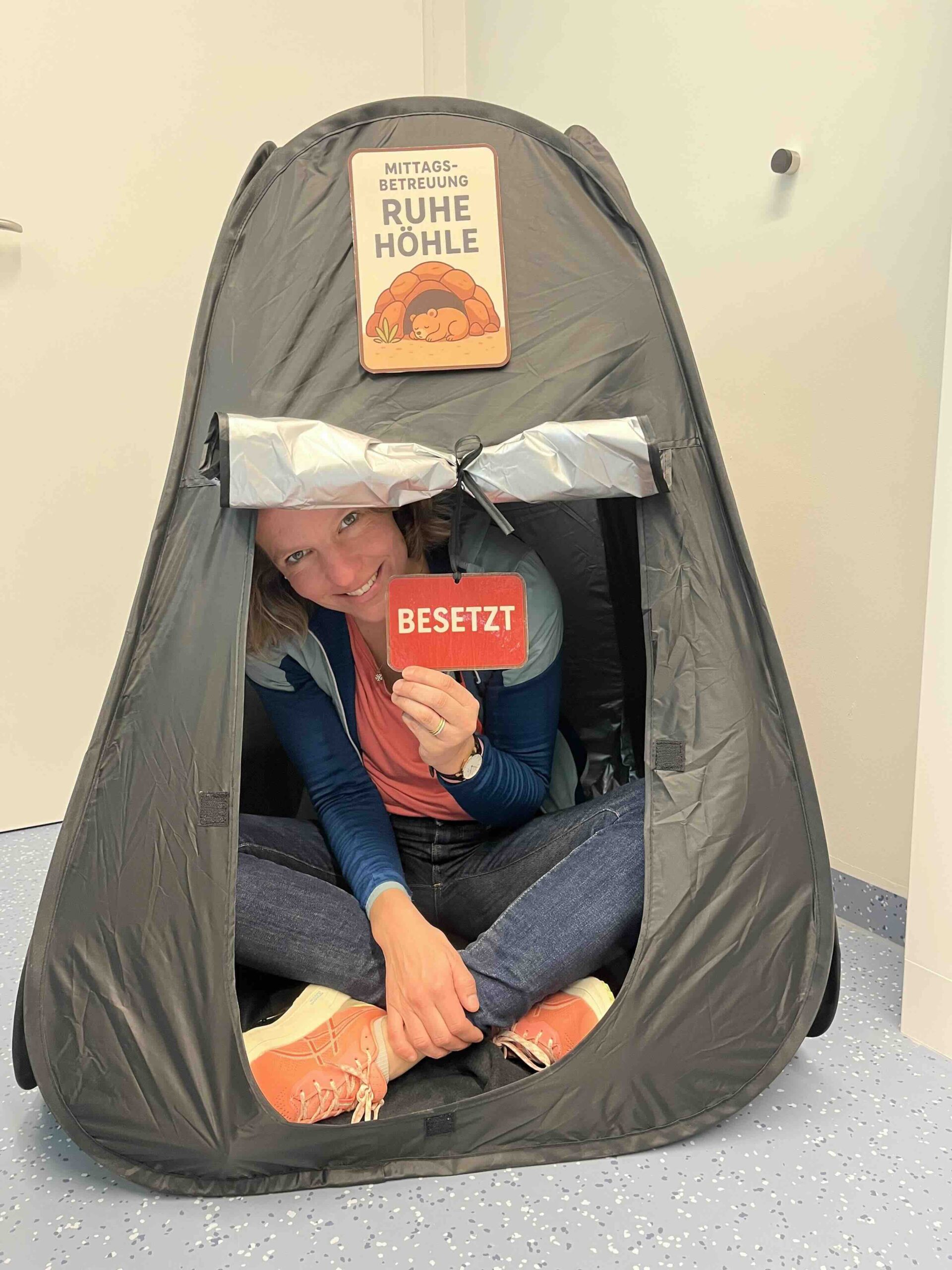 Das Inklusionsteam der Schule (MSD, JAS und Schulpsychologie) realisierte mit der „Ruhehöhle“ in der Mitti eine Rückzugsmöglichkeit für Kinder, die eine Auszeit oder Ruhe brauchen.